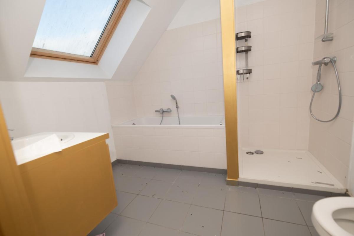 Dans un quartier résidentiel à la campagne, appartement duplex 3 chambres, proche du centre-ville, avec 2 places de parking, situé aux niveaux +1 et +2, comprenant : 1 hall d’entrée, 1 wc avec lave-mains, 1 cuisine équipée, séjour avec escalier pour accès au 2ème étage vers 1 hall/palier, 1 buanderie (chaudière), 3 chambres et 1 salle de bain carrelée (lavabo, wc, douche). A2.104