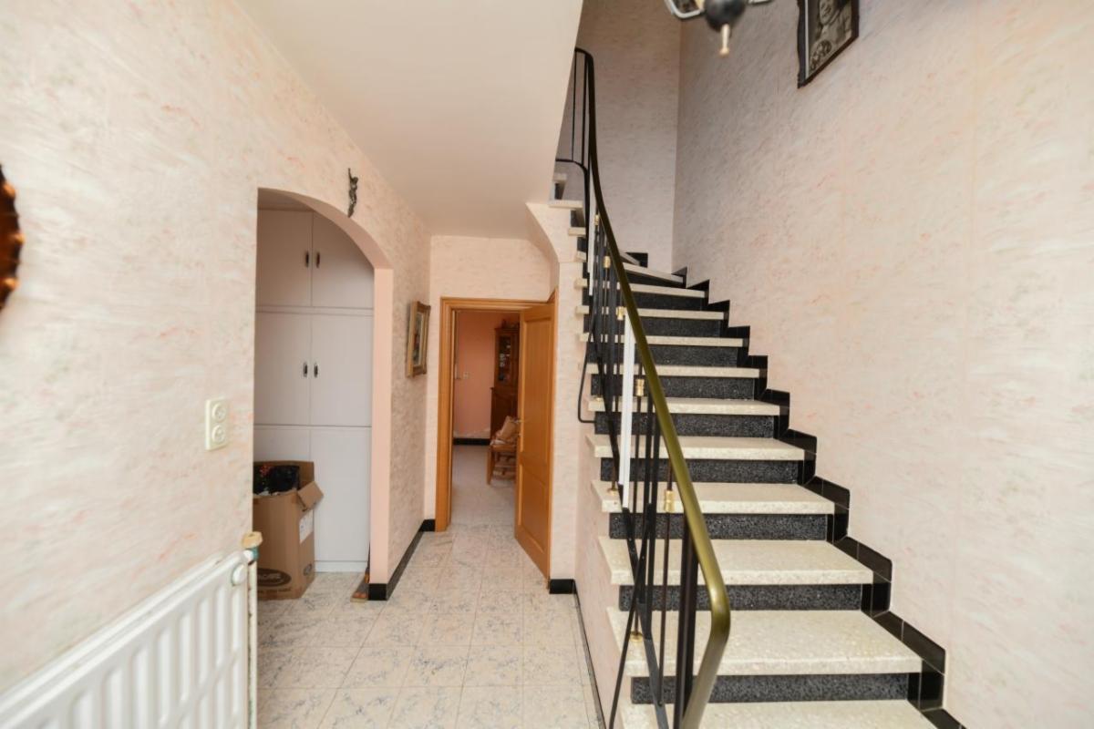 Villa avec jardin et verger sur 28 ares 54 centiares à RUMILLIES comprenant : Au rez-de-chaussée : un hall d’entrée avec escalier, un wc avec lave-mains, un salon/salle-à-manger à l’avant avec une cheminée non utilisée, une pièce arrière (« espace repas »), une cuisine en bon état (petite largeur) avec un four, un micro-ondes, un evier, un frigo, une taque 4 foyers), Au sous-sol : une cave (chaufferie et espace technique en bon état), À l’étage 1 : un palier, une salle de bains (lavabo + baignoire), quatre chambres dont deux grandes avec balcon, une moyenne et une petite, À l’étage 2 : un grenier de rangement avec escalier escamotable, À l’extérieur : un trottoir, un jardin d’agrément ainsi qu’une prairie (clôturés), un bâtiment avec un garage, une remise + un parking (latéraux), et une remise à l’arrière pour petits animaux.